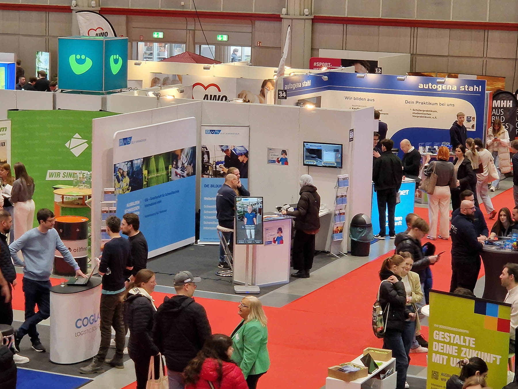 Am Freitag nahmen vornehmlich Schulgruppen an dieser Veranstaltung teil, sodass wir die Besucher an diesem Tag primär über Berufsausbildungen, in denen das Schweißen oder Prüfen eine bedeutende Rolle spielen, informierten. Am Samstag hingegen war die Besucheranzahl zwar wesentlich geringer als am Vortag, aber das Publikum war heterogener (z.B. Jugendliche, arbeitsuchende Erwachsene oder weiterbildungsinteressierte Beschäftigte). Daher berieten wir die Interessenten an diesem Tag sowohl über Lehrgänge der praktischen und theoretischen Ausbildung als auch über Karrieremöglichkeiten in der Schweiß- und Prüftechnik allgemein und bei uns im Unternehmen.