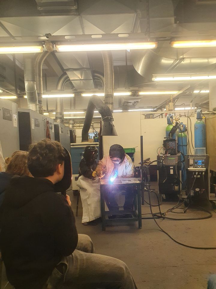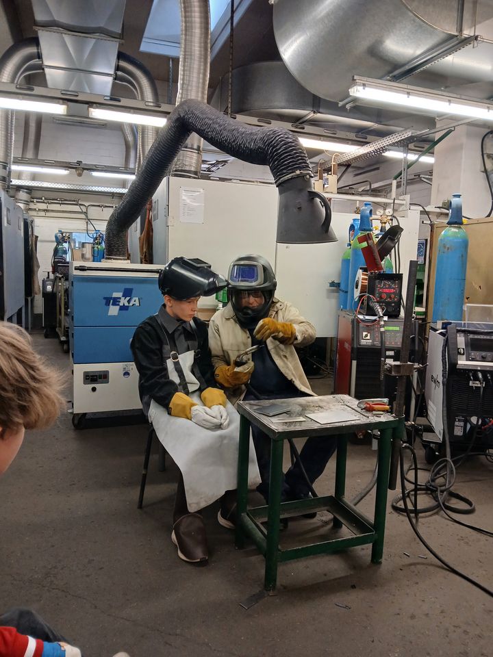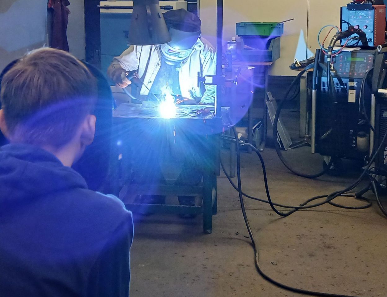 Der Tag war nicht nur theoretisch geprägt, sondern legte großen Wert auf praktische Erfahrungen. Zuerst erhielten die Teilnehmer in unserem Werkstattbereich von unserem erfahrenen Schweißlehrer eine ausführliche praktische Einführung in die drei Schweißverfahren MAG, WIG und E-Hand. Dabei wurde nicht nur erklärt, wie die Verfahren funktionieren, sondern auch, warum jedes einzelne von ihnen in bestimmten Bereichen eine besondere Bedeutung hat.