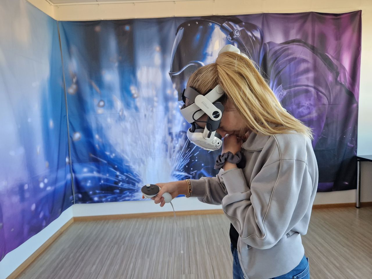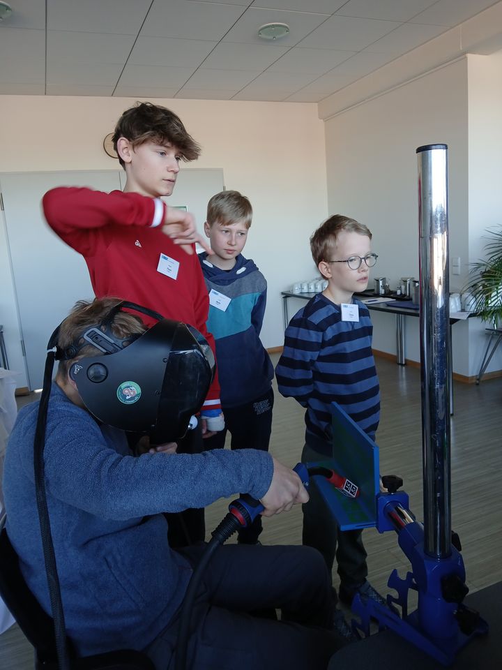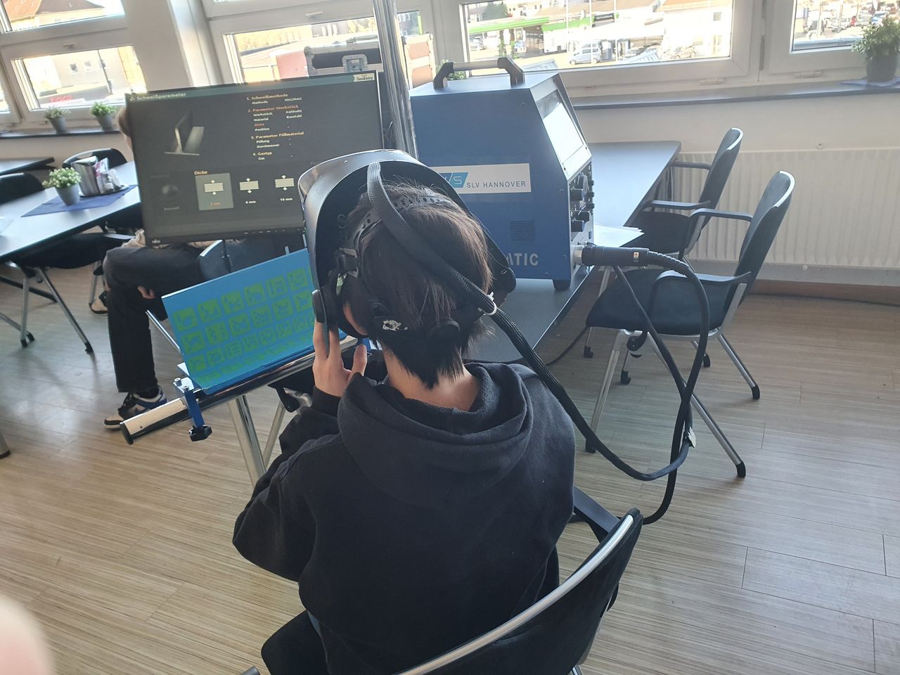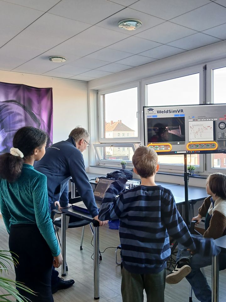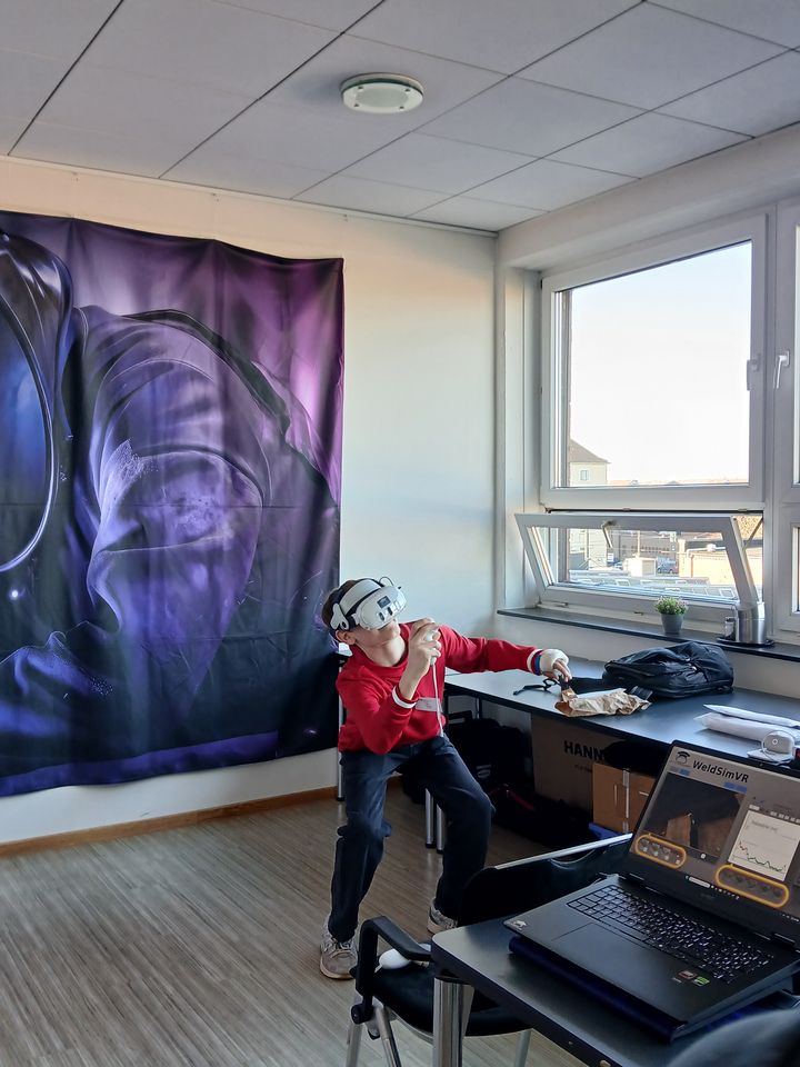 Doch damit nicht genug – der Zukunftstag ging auch in die virtuelle Welt über. In der virtuellen Werkstatt, ausgestattet mit einem VR-Schweißtrainer, konnten die Teilnehmer das Schweißen in einer simulierten Umgebung kennenlernen und ihre Kreativität ausleben. Die virtuelle Realität ermöglichte es ihnen, ohne Risiko erste Erfahrungen zu sammeln, die eigene Handfertigkeit zu testen und ein Gefühl für die Technik zu entwickeln.