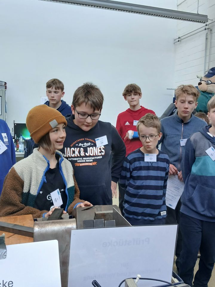 Ein weiteres Highlight des Tages war der Besuch des Prüflabors und der Metallografie. Hier lernten die Jugendlichen alles über zerstörungsfreie und zerstörende Prüfverfahren und deren praktische Anwendungen. Sie konnten erleben, wie Materialien auf ihre Festigkeit und Struktur hin untersucht werden. Zudem bekamen sie spannende Einblicke in die mikroskopische Untersuchung von Metallen.